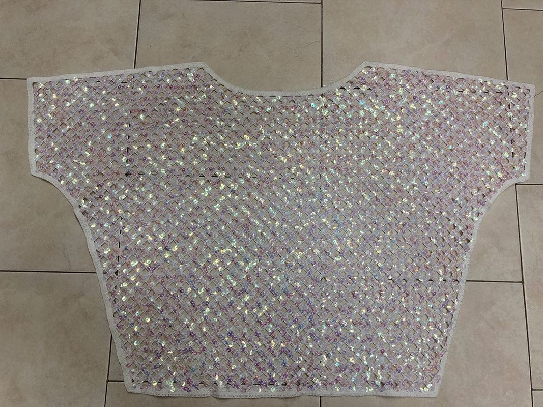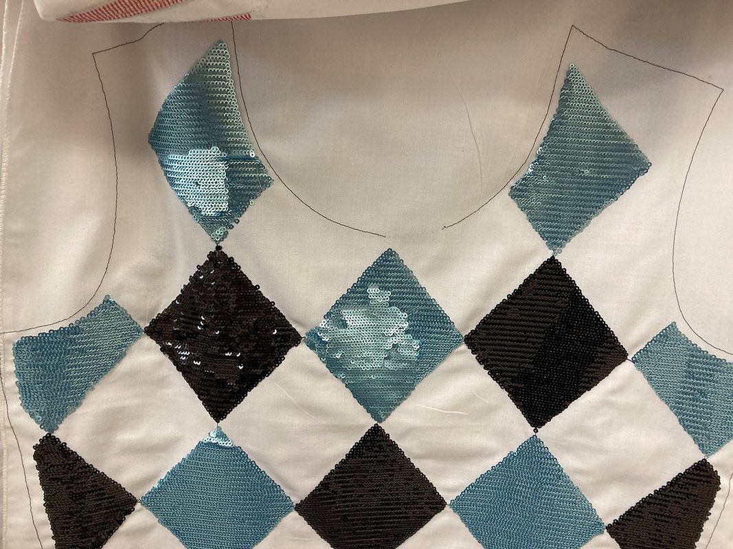 Si effettua la lavorazione per l’arricchimento di ricami con l’applicazione di strass termoadesivi e paillettes per l’arricchimento del ricamo realizzato.